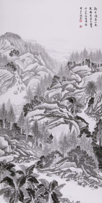 夏云生嶂远瀑 水引溪长