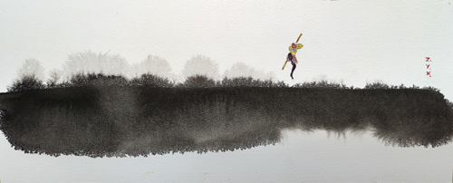 横空出世 纸本水墨水彩